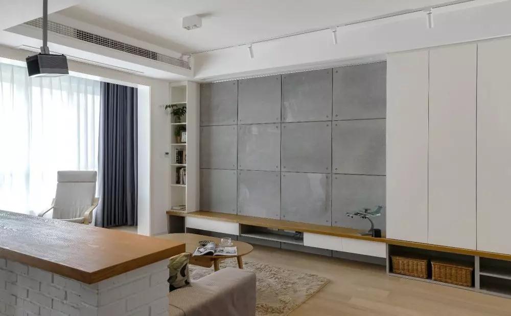 ▲ 電視墻以獨特的美巖板打造,搭配定制的簡(jiǎn)約電視柜,營(yíng)造出一種原始而時(shí)尚的氛圍感。