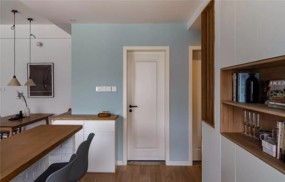 ▲ 餐廳卡座后方裝了一個(gè)轉角餐邊柜,將轉角處的走廊空間利用起來(lái),為小空間帶來(lái)了豐富實(shí)用的收納。