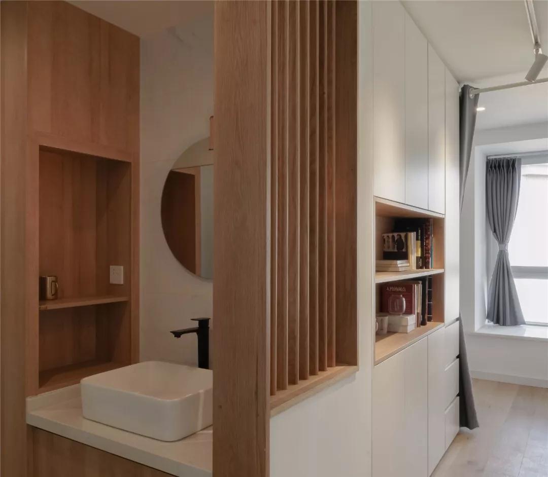 ▲ 在辦公休閑區后方的這個(gè)位置設計了洗手盆,為小衛生間騰出更加舒適的衛浴體驗。