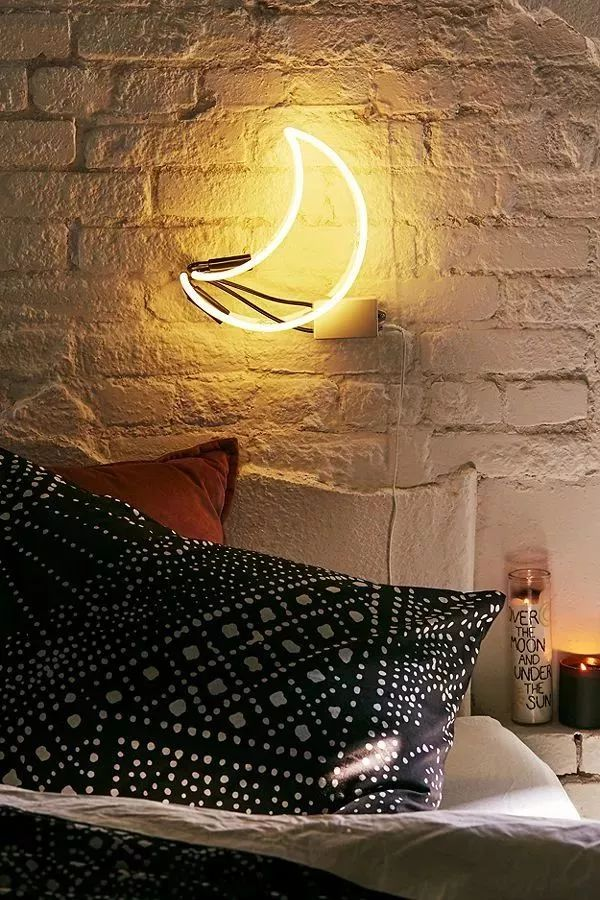 如果你對霓虹燈的印象還停留在酒吧和商業(yè)街,那端端可真是要氣到翻白眼了。造型多變的霓虹燈不僅能做臥室空間的氛圍照明,還能替代裝飾畫(huà)做床頭區的主要裝飾。