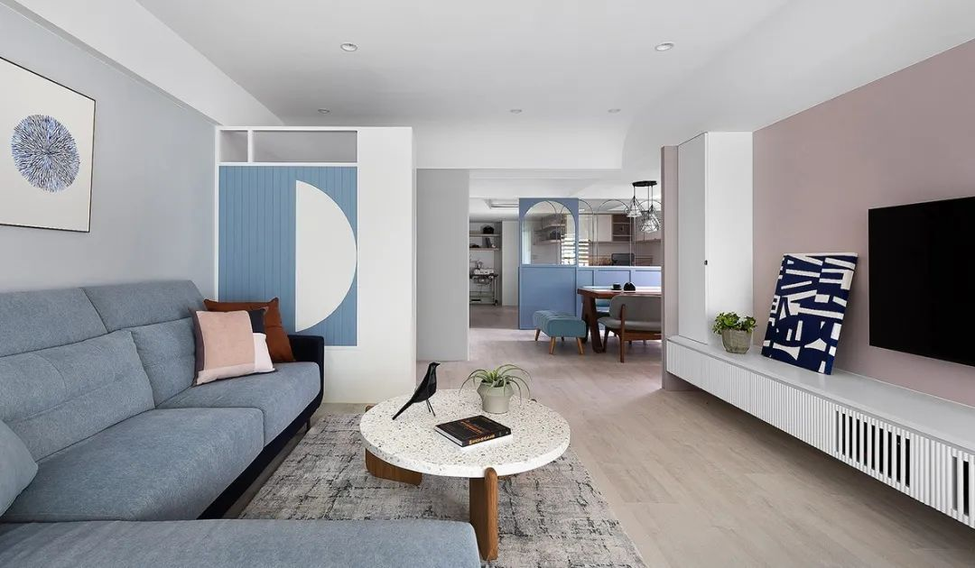 從地面到墻面,再到天花,顏色依次漸變的空間感,令人非常和諧自然,也不會(huì )顯得頭重腳輕。
