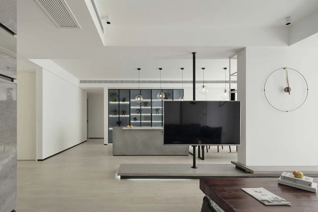 客廳公開(kāi)空間,采用木質(zhì)紋理清晰自然,色彩較為柔和的地板,以營(yíng)造明亮和諧的氛圍。