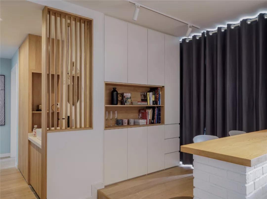 ▲ 大面積的收納柜,是保持公共區域干凈整潔的儲物保障。通透的空間設計,使采光與通風(fēng)也得以改善。