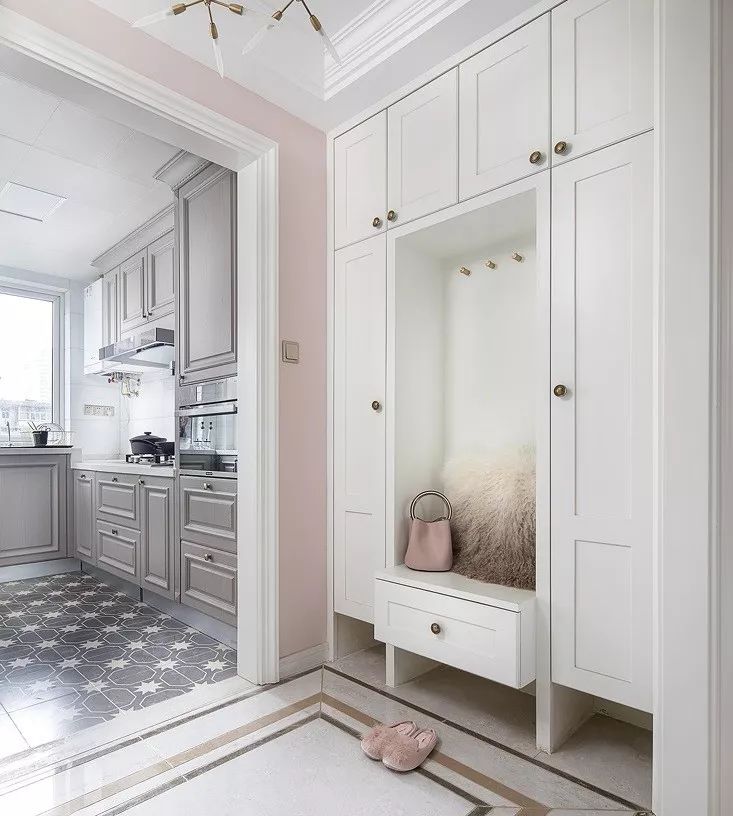 ?換鞋凳和鞋柜不一體化設計也是可以的,凳子選用和鞋柜風(fēng)格差不多的,這樣搭配起來(lái)才好看。▼?鞋柜設計掛鉤,方便我們回家掛外套、帽子、包包、鑰匙等等物品,也是相當方便實(shí)用的。▼?鞋柜如果不是矮柜,建議定制頂天立地柜,頂層不留空隙,也不會(huì )留灰塵,打掃起來(lái)也比較方便。▼關(guān)于換鞋凳、掛鉤、感
