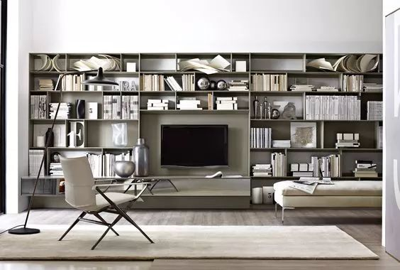從現代居家環(huán)境的結構來(lái)講,如果想完成大規模的藏書(shū)。最有效的辦法就是在客廳中制作書(shū)架墻。想實(shí)現這個(gè)愿望也不難。只需有效地利用電視背景和沙發(fā)背景,設置一個(gè)有型有款的書(shū)架墻,再加一個(gè)舒適的沙發(fā),就足夠了。