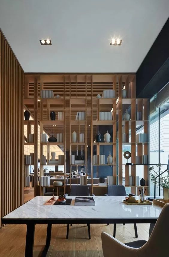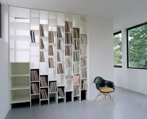 不要墨守成規,以為書(shū)架只能靠墻放置,可以將大型書(shū)架搬至要分隔的區域,這樣輕易就可劃分出兩個(gè)獨立的空間;如客廳和其他空間的交接地帶,充分利用隔斷做書(shū)架收納,可有效放大空間。